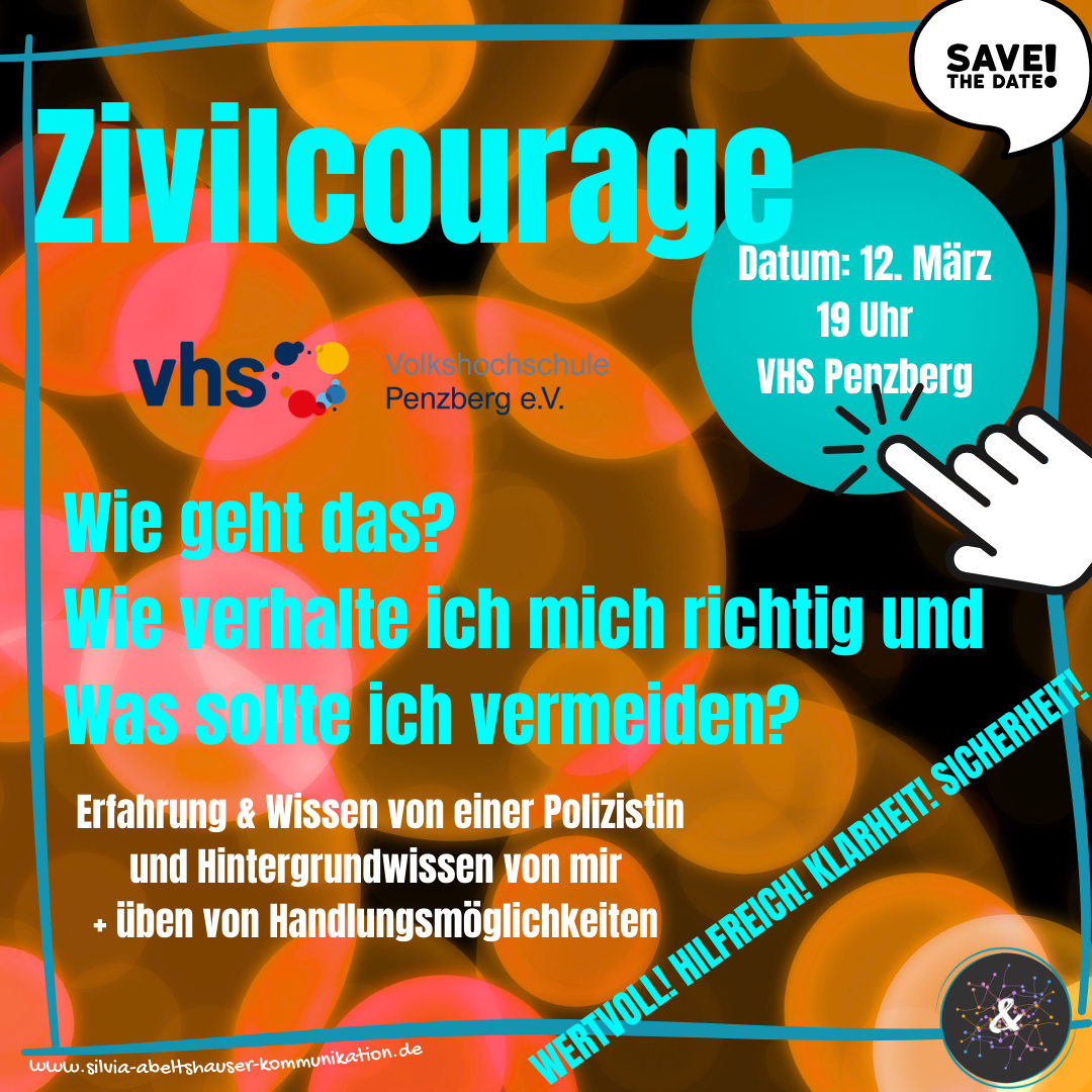 Zivilcourage oder auch Sozialer Mut ist ein wichtiges Thema in unserer Gesellschaft. Ich befasse mich seit längerem damit und gebe dazu Kurse an Grund- und weiterführenden Schulen sowie Schulungen für Pädagogen und Elternabende. Dabei höre ich oft, dass vielen nicht bekannt war, wie man Zivilcourage eigentlich zeigt.